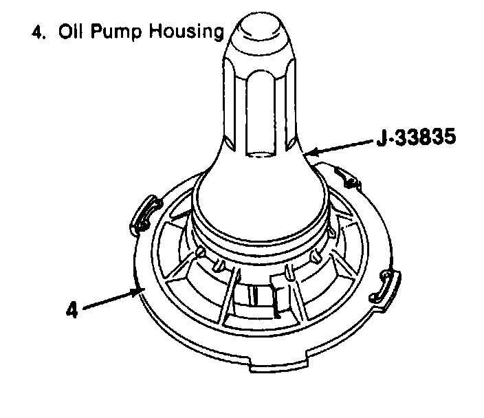 32. Pump seal (3) in the pump housing (4), using J-33835.