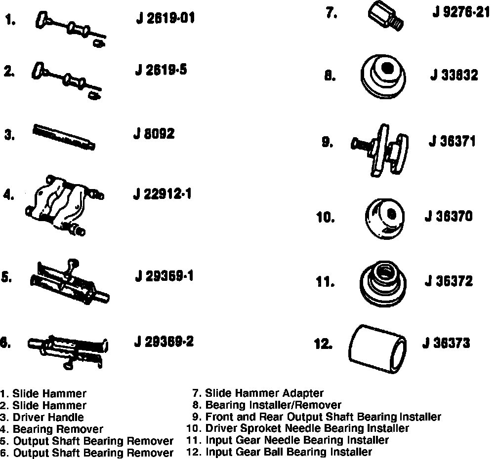 2. Install needle bearings in rear case half using J-36372 and J-8092. Bearings must be flush with boss on case housing.